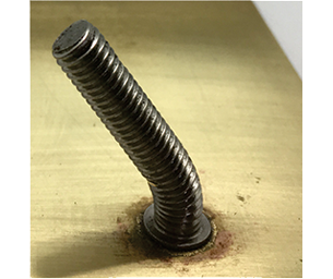 CD stud onto the back of brass, showing the shear strength of the weld.